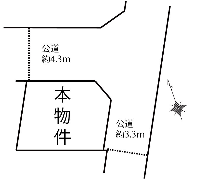 | 接道詳細 | 北4.3m公道に5.5m接道 東3.3m公道に4.1m接道 | ||
